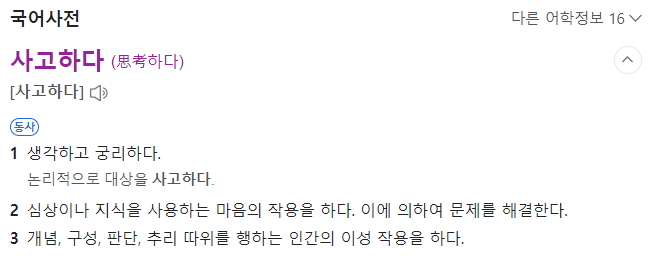 네이버에서 '사고하다'라는 단어를 찾아보았습니다.